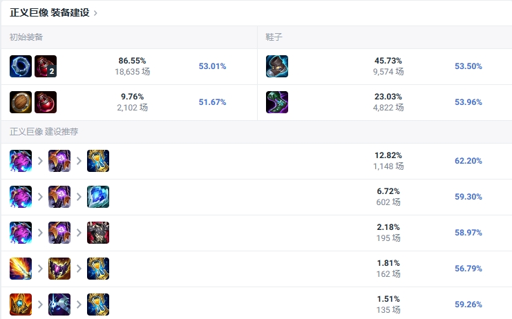 2024的LOL更新到了14.11版本,正义巨像目前在国内属于T2级别英雄,相比卡牌,也有着强大的支援能力。这个英雄第一件推荐出璀璨会响,这个装备在坦度和属性都很契合正义巨像,第二件推荐出裂隙制造者,第三件看情况出金身、冰心或者反甲。