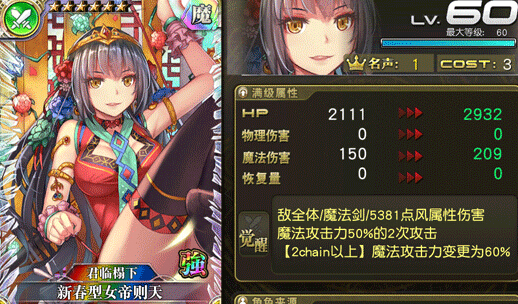 大家新年快乐啊~投石姬在这里祝大家新的一年欧气满满!告别nice金金哦~佣兵:新春型女帝则天魔丘的2连风aoe,cost修正后60%可能会变78%,对抗低防boss时比较好用,对抗高防boss时会比较尴尬。但是相同模版比日服同模版多了个60%变更也是蛮不错的。评价:B(可以进入卡组,但是强度略低或有免费替换卡)新春型珂莱姆对应的物丘的2连光aoe,修正后触发