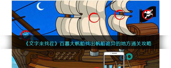文字来找茬是一款可以在抖音平台内尽情玩耍的新款文字类益智游戏。在游戏的百慕大帆船关卡中,玩家需要找出帆船中诡异的地方。以下是都市小编为大家带来的《文字来找茬》百慕大帆船找…