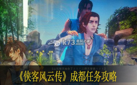 侠客风云传成都的主要内容任务都不会太难,基本的任务都属于根据剧情走就不会有卡关的地方,所以以下个人也就简单的写出成都的任务要点攻略。 经典游戏新仙剑奇侠传手机版下载:K73.COM很简单的流程攻略:4个锁住的宝箱,其中1个再疯人院(最北方)+300的宝衣,百草附近,还有唐门左边地方,还有一个绝刀门附近1-去 拜访年师傅-芙蓉楼(入口向下第一个岔口右拐,门