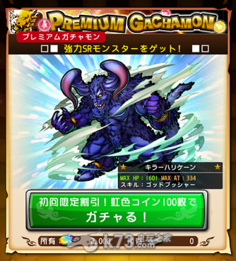 在1週年活动结束后,将恢復以往的抽奖方式。完成教学后,绑定Twitter与Facebook,共可获得彩虹币100枚,此为真正的开局,另外改版后值得注意的有以下四点。■ 单隻高级抽奖 (プレミアムガチャモン)首抽 彩虹币100枚 极高机率SR 通常 彩虹币300枚■ 十隻大型抽奖 (ビッグガチャモン)彩虹币2700枚 保障必定SR 1隻■ 进化后经验值继承