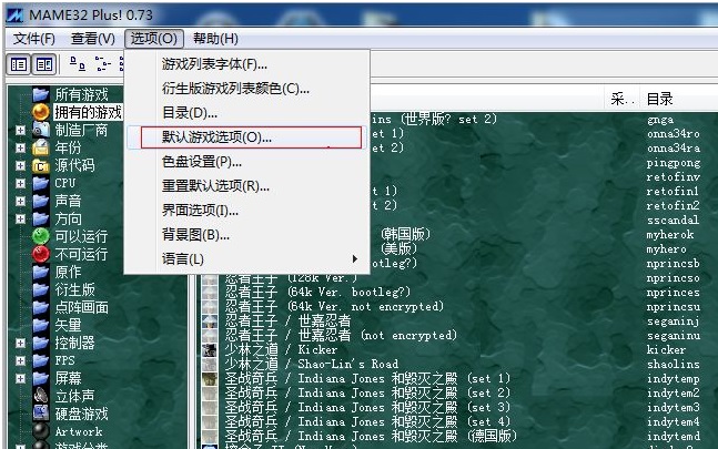 打开菜单-“选项”--“默认游戏选项”注意:先插入摇杆再运行MAME32,否则模拟器认不到摇杆。勾选“启用摇杆输入”下面以 拳皇97为例设置键位进入游戏后,在游戏画面直接按键盘“Tab”键弹出设置菜单选取“输入选项(这个游戏)”按回车确认选