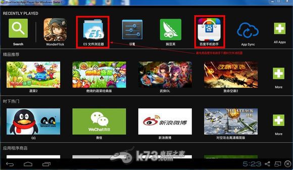 给大家讲解这篇文章的原因其实还是因为最近有一款不错的手机游戏奇迹幻想WonderFlick上线了,很多玩家们对于这款作品都非常有爱,于是乎有很多玩家们就想用模拟器玩,不过这款作品对于电脑配置要求要高一些,不然模拟器也是跑不动的,如果你有信心的话就可以试试。1、首先进入bs模拟器使用百度手机助手下载ES文件浏览器2、在sdCard里打开windows文件夹,对
