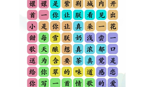 文字玩出花小甜歌四郎版怎么过?进入文字玩出花小甜歌四郎版关卡后,横着映入眼帘的有“嬛嬛是紫荆城内开”、“首一你让朕看见出”和“小是你让真朵一花”等不通顺的句子,竖着看则有“嬛首小甜歌送给你”、“嬛一是