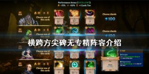 横跨方尖碑无专精阵容详情介绍,横跨方尖碑是一款回合制卡牌策略游戏,在游戏中玩家将踏入古老的区域,这里本是一片祥和,却在某一天被邪恶的组织所侵扰,带上你的勇者们,组建卡组,一同打败邪恶的敌人。下面小编就