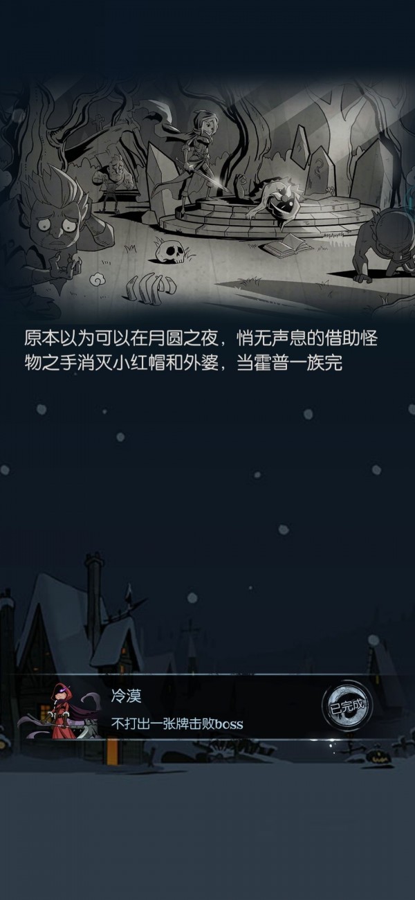 月圆之夜中,冷漠成就完成难度大,那么游戏中冷漠成就该怎么完成,下面一起来看看吧。 月圆之夜冷漠成就获取攻略 冷漠成就易达成有三个流派: 1.装备流骑士 2.闪避流游侠 3.法力流女巫(冷漠要求为不出一张牌击败boss,这里的boss泛指关卡内所有boss,第一二三章小boss也算) 1.装备流骑士推荐日记模式,多拿装备牌,核心装备:尖刺壁垒、马