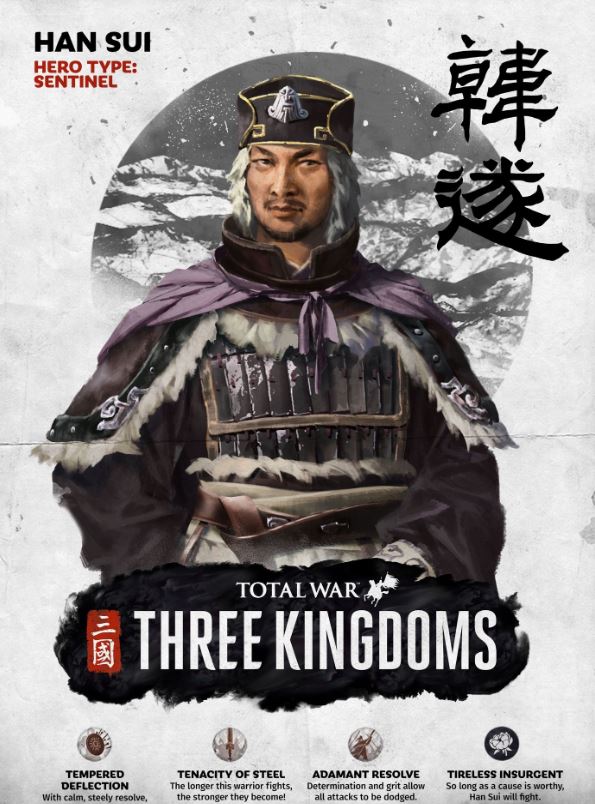 全面战争三国英雄韩遂字文约,凉州金城郡人,东汉末年军阀、将领,汉末群雄之一,原名韩约,后改名遂,最初闻名于西州,被羌胡叛军劫持并推举为首领,以诛宦官为名举兵造反,后受朝廷招安,拥兵割据一方长达三十余年,技能有钢筋铁骨、历久弥坚、强毅果敢、轻狡反复。