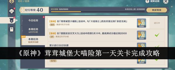 原神茸茸城堡大喵险第一天关卡怎么完成?这次的新挑战刚刚开启,那么还没完成的小伙伴可以先来看看下面的原神茸茸城堡大喵险第一天关卡速通攻略,希望可以帮助到大家。原神茸茸城堡