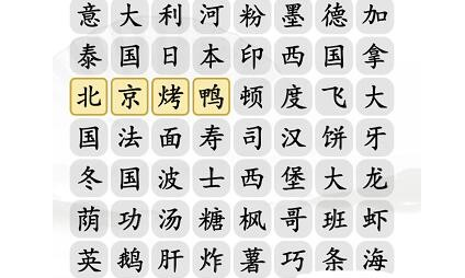 汉字找茬王消除世界美食意大利怎么过?进入汉字找茬王消除世界美食意大利关卡后,横着映入眼帘的有“意大利河粉墨德加”、“泰国日本印西国拿”和“北京烤鸭顿度飞大”等不通顺的句子,竖着看则有“意泰北国冬荫英越