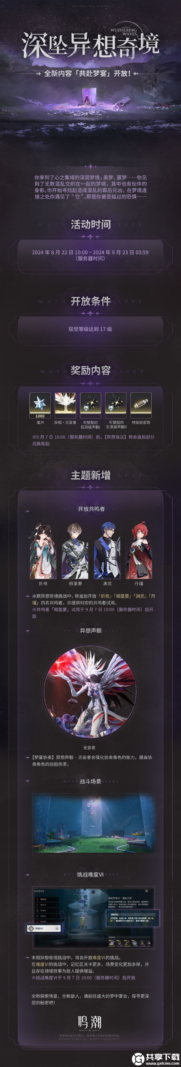 鸣潮深坠异想奇境共赴梦宴即将开启?鸣潮这个好玩的战斗冒险类型的游戏,更多的游戏探索方式和不同的养成获取福利也都是非常精彩的,里面的游戏开启战斗方式也都是可以冒险的,里面的游戏收集强化冒险搭配也都是非常