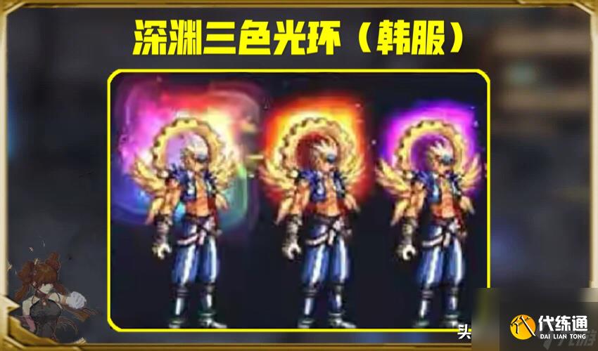 DNF的光环设计,不断的推陈出新,根据不同的版本和功能,出现了大量的酷炫光环,比如心悦龙腾、欧皇光环、团本光环等,让玩家们是眼前一亮,甚是喜爱!在100级版本的韩服,出现了一款深渊柱子“三色球”光环,如图所示,深渊球的三色机制出现在玩家后背,可在紫色、金色、彩虹色中自选一种颜色,让国服玩家非常羡慕,都在期盼早日在国服出现,好选择寓意“爆神
