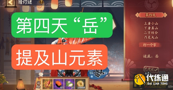 阴阳师灯谜上身小山下身真山二字结合乃是大山答案是什么?上身小山下身真山二字结合乃是大山(打一个字)是阴阳师2022猜灯谜活动第四天的灯谜,很多玩家想知道具体答案,我就给大家带来阴阳师灯谜上身小山下身真山二字结合乃是大山答案一览,希望可以帮助到有需要的玩家。阴阳师灯谜上身小山下身真山二字结合乃是大山答案一览 1、谜面:上身小山