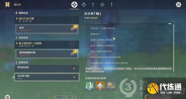 原神隐藏任务古云有螭怎么做?原神是一款可以在开放世界探索和解谜的游戏,这游戏里面有很多隐藏任务,完成这些任务可能会有巨额收益,我给各位玩家带来了原神隐藏任务古云有螭攻略。原神隐藏任务古云有螭怎么做 古云有螭第一阶段 隐藏任务古云有螭的触发地点有三个,分别是“遗迹”、“最高处”、“岩尊像”,找