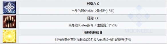 FGO凯妮斯技能怎么样?对魔力C这个技能提供了15%的魔法伤害加成,虽然幅度不算很高,但对于魔法伤害输出仍然有一定的帮助。