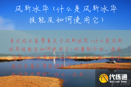 在此给大家带来关于风斩冰华(什么是风斩冰华技能及如何使用它)的最新介绍,通过简单的介绍帮助大家解决一些问题,希望通过在此文章能够解决一些疑问,对大家能够有所帮助!作为一款热门的游戏,王者荣耀中有很多英雄拥有独特的技能,其中之一就是风斩冰华。这个技能是什么,它有什么特点,如何使用它呢?。一、什么是风斩冰华技能?风斩冰华是王者荣耀中的一种技