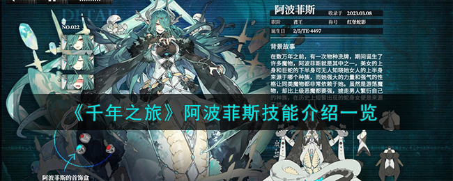 千年之旅是一款十分火爆的手游,其中阿波菲斯是千年之旅中的四星星痕,出身于艾尔格隆的科隆半兽人,但是其强度如何呢?接下来就让我们一起来仔细了解一下先知阿波菲斯吧,希望对感兴趣的玩家有所帮助,大家一起看一看吧。千年之旅阿波菲斯技能介绍一览 " > 千年之旅阿波菲斯怎么样技能介绍 蚀骨凶牙弱点系数130%,对敌方单体造成攻击力175%的伤害,100%的概率对目标