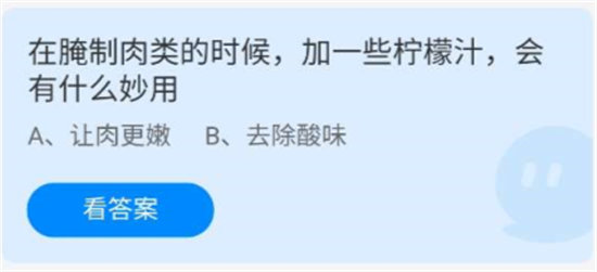 问题千千万,蚂蚁庄园占一半,蚂蚁庄园每天都会上新新问题,那么今天小编又带着答案走来了,有小伙伴们去答题了吗?答对了吗?还不清楚的小伙伴就跟着小编的脚步来看看吧,那么今天蚂蚁庄园的第一个问题是:在腌制肉类