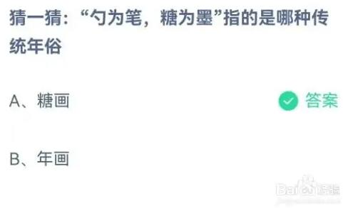 勺为笔,糖为墨指的是哪种传统年俗?这是支付宝蚂蚁庄园小课堂2023年1月27日问题之一,答对后能领取小鸡饲料180克,答错只有30克饲料,为了保证正确率可以获得更多的小鸡饲料,下面我就给大家带来了支付宝答题1月27日答案2023蚂蚁庄园分享,大家可以根据答案去选择正确选项哦。>>>>支付宝2023蚂蚁庄园小课堂答案汇总(每日更新)>>>>支付宝每日一题答案汇