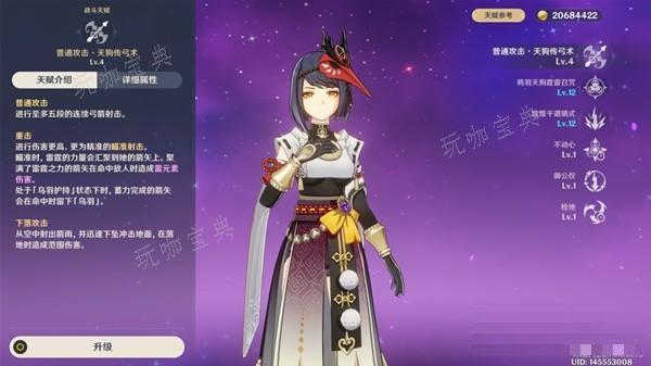 原神4.3中开放了九条裟罗的角色UP池,九条裟罗角色定位为四星增益辅助。就给大家讲解原神4.3九条裟罗武器圣遗物及配队攻略!角色介绍九条裟罗角色定位为四星增益辅助,六命雷系专辅。进行五段弓箭射击,当释放过元素战技之后,可以进行蓄力,再次向蓄力位置留下一枚乌羽。向后位移并且留下一个乌羽,并且手上获得一个乌羽,可通过蓄力攻击发出,乌羽落雷降下后可
