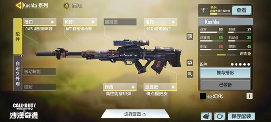 使命召唤手游Koshka如何搭配配件?Koshka是使命召唤手游中的一把狙击枪。说到狙击枪,玩家们的第一映像应该是就是射程远,射速快了吧,没错,狙击枪基本上就是要做到一击毙命的效果。
