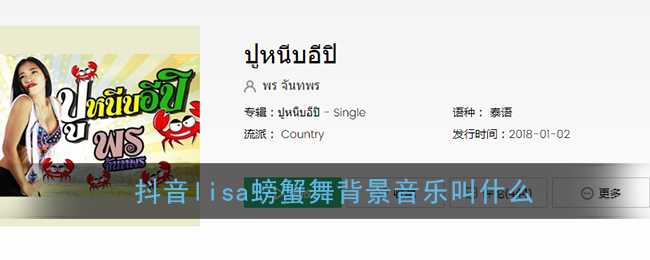 抖音lisa跳螃蟹舞的视频相信很多小伙伴都看到了,其中舞蹈的背景音乐很多小伙伴听了之后也觉得非常魔性,那么抖音lisa螃蟹舞背景音乐叫什么呢?这里我为小伙伴们带来了lisa螃蟹舞歌曲bgm介绍,还不知道的小伙伴们一起来看看吧!我推荐阅读:抖音热门歌曲大全 抖音lisa螃蟹舞背景音乐叫什么?歌名:ปูหนีบอีปิ 在线试听:https: y.qq.co