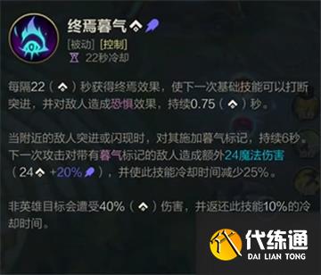 英雄联盟手游熬夜波比技能是什么?英雄联盟手游熬夜波比什么时候上线?熬夜波比是近期即将上线的全新英雄,有一些小伙伴不知道熬夜波比的技能效果是什么,接下来就让我们一起去看看英雄联盟手游熬夜波比技能一览吧。英雄联盟手游熬夜波比技能一览:1、被动终焉暮气终焉 - 每隔一段时间,薇古丝获得“终焉”加持,使下一次基础技能可以打断突进并使敌人恐惧。暮气 -