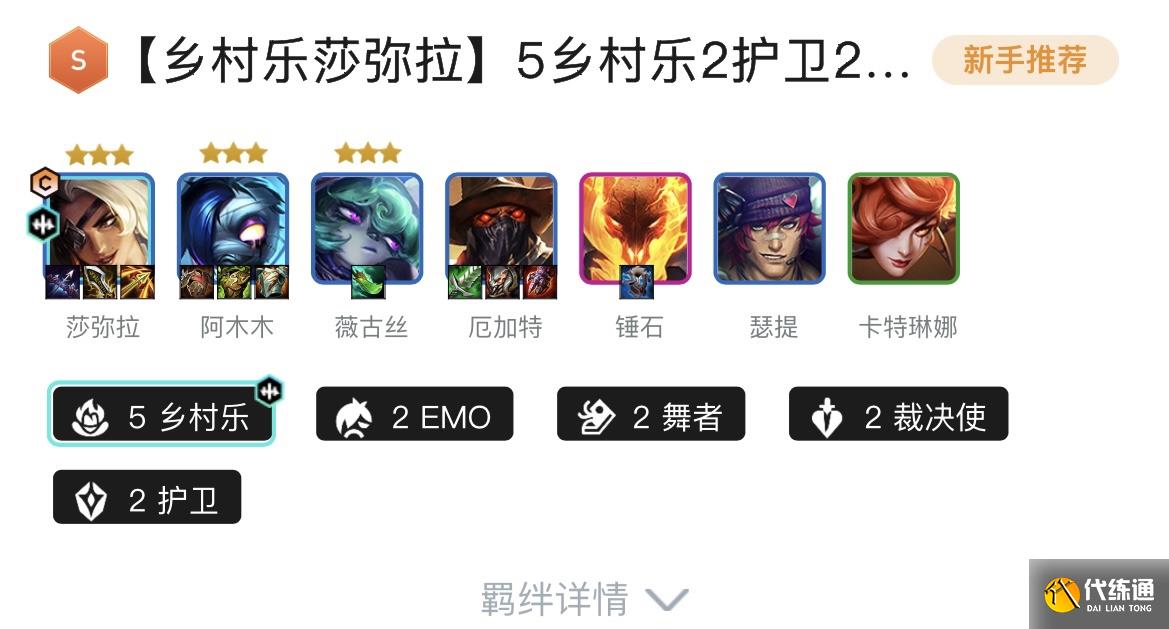 金铲铲之战s10赛季不少玩家在玩,本赛季想快速上分的话大家需要在挑战的时候搭配合理的整容,那么有哪些阵容比较好上分呢?下面乐园我整理了一些强势的上分阵容可以选择,感兴趣的玩家速速来查看吧。金铲铲之战s10上分阵容大全一、乡村乐莎弥拉1、阵容组成莎弥拉、阿木木、薇古丝、厄加特、锤石、腕豪、卡特2、阵容羁绊5乡村乐、2EMO、2舞者、2裁决使、2护卫二、高上