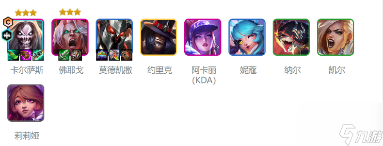 给大家推荐下最新的五杀唱跳双C阵容,死歌和佛耶戈在本次更新中都进行了加强,帽子的加强也让爆发技能伤害提升非常大,死歌技能虽然数量少了1个但是伤害提升不少,现在带上帽子基本就是二星输出直接秒话不多说,搬好小板凳,一起学起来叭!1.阵型阵容由凯尔 纳尔 莫德凯撒佛耶戈 死歌(五杀摇滚)约里克组成7五杀摇滚补充莉莉娅妮蔻组成3超粉2秘卫补充阿卡丽组成3