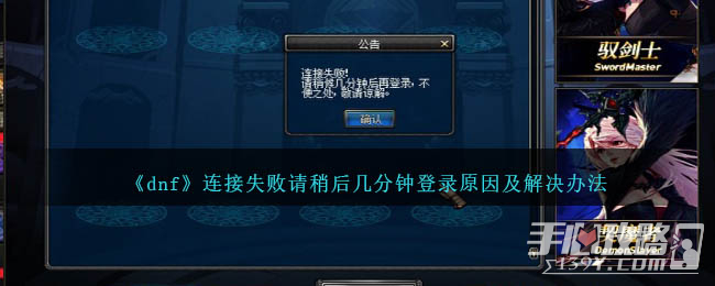 在热门游戏dnf中,许多玩家可能对dnf连接失败请稍后几分钟登录怎么解决的详细内容感到困惑。为了帮助大家更快速地掌握游戏技巧,我为小伙伴们带来了相关的攻略分享。dnf连接失败请稍后几分钟登录原因及解决方法 " >dnf连接失败请稍后几分钟登录原因及解决攻略1、如果游戏中遇到这种情况,可能是当前服务器爆满,重新登录尝试。dnf连接失败请稍后几分钟登录原因及解