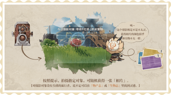 原神刚出的活动中需要我们拍摄各种颜色的物品,我们需要拍摄的是红色的采集物。那么小伙伴们知道红色的采集物都有那些吗?下面就让我来告诉大家原神福至五彩红色采集物介绍吧。原神福至五彩红色采集物介绍首先是全地图都有的。苹果苹果日落果胡萝卜:推荐是晨曦酒庄前面的葡萄园旁边胡萝卜:归离原和翠玦破中间的河道两边烈焰花然后是蒙德特产风车菊:蒙德七天