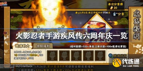 火影忍者手游疾风传六周年庆活动内容有哪些?相信有很多小伙伴还不太清楚火影忍者手游疾风传的六周年庆活动都有哪些内容,那么下面我就给大家带来火影忍者手游疾风传六周年庆一览。火影忍者手游疾风传六周年庆一览 1、不忘初心 金币大放送火之意志重燃,一同庆贺疾风传周年庆!5月13日至5月26日累计登录9天,即可领取不忘初心全