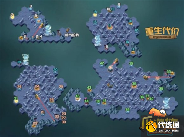 重生代价通关路线图: 然后按照数字顺序,一个个点击过去。 1.到1的位置,点击机关,使保护罩转移 2.点击2的位置,使龙卷移动到此处 3.到3的位置,点击机关,使保护罩转移 4.到4的位置,直接领取奖励