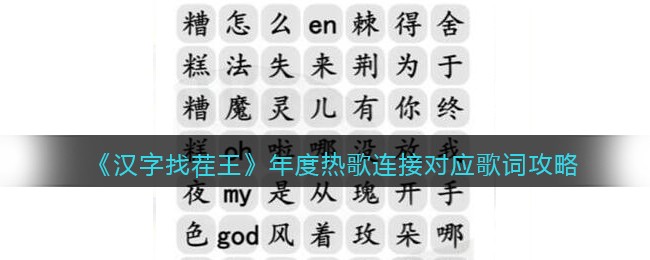 汉字找茬王游戏是抖音上热火的文字闯关游戏,其中关卡年度热歌连接对应歌词怎么过?这一关集合了许多今年的热门歌曲,大家需要连接歌曲歌词。下面是推背图下载站小编给大家带来的抖音小游戏《汉字找茬王》年度热歌连