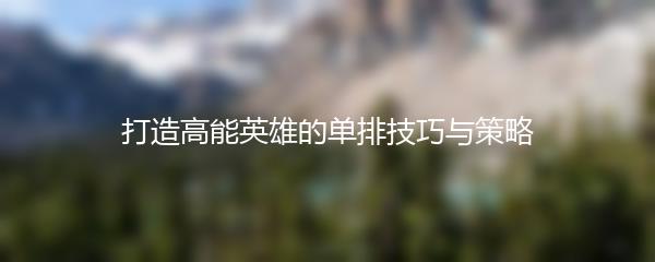在竞技游戏中,独自一人单排可能是一项具有挑战性的任务。然而,对于那些渴望成为高能英雄的玩家来说,单排游戏模式却是磨练技巧和展示实力的绝佳机会。本文将介绍一些打造高能英雄的单排技巧与策略,帮助