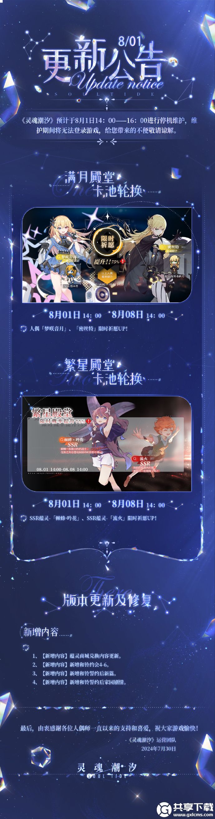 灵魂潮汐8月1日停机维护公告?灵魂潮汐是一款非常不错的养成卡牌类型的游戏,更多的游戏探索玩法体验也都是非常刺激的,不同的游戏画面和冒险战斗也都是可以邀请更多的好友一起玩的,不同的游戏体验和打斗风格也非常刺