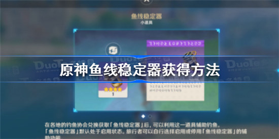 原神鱼线稳定器如何获得?原神很多玩家都在玩的一款动作冒险游戏,这款游戏有着很多全新的冒险玩法,还有各种地图可以探索,给玩家带来很多的乐趣体验,游戏的鱼线稳定器很多玩家都想要,但是不知道怎么获取,小编这