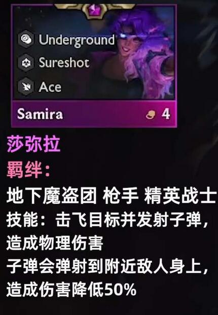 云顶之弈s8莎弥拉技能羁绊是什么?莎弥拉曾经在云顶之奕的S4以及S6中上线过,分别为五费卡以及三费卡,在当时的版本中都是阵容的大核,能够打出高额的伤害。在S8赛季中莎弥拉即将回归云顶的舞台,本次回归将会作为一张四