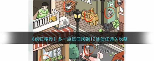 疯狂梗传是一款在抖音上很火的休闲益智娱乐类闯关游戏。其中关卡"多一点信任"场景设定在菜市场,许多人在购物,玩家需要找到12处信任。下面是一个详细的通关攻略,希望对你有所帮助…