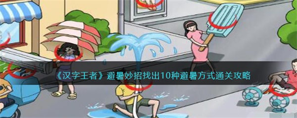 汉字王者是一款非常有趣的汉字解谜类答题闯关游戏。在避暑妙招关卡中,玩家需要通过观察图像找出10种避暑方式。以下是都市手游网为大家整理的《汉字王者》避暑妙招找出10种避暑方式通关攻略...