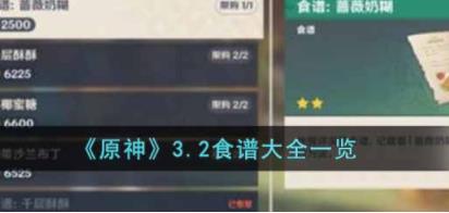 原神3.2食谱有哪些?原神这个游戏中有一个休闲的玩法,那就是烹饪,所以游戏中的食谱类型很多,每一种食谱其实都是一种有药用价值的,能短暂提高游戏中的角色们的属性的,每一种食物的功效还不一样,我不知道小伙伴们