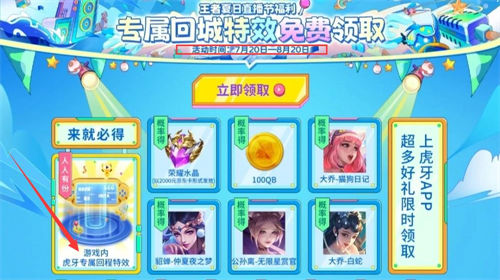 王者荣耀虎牙回城特效怎么获得?近日,王者荣耀官方与虎牙联合推出了一个回城特效皮肤,获得了很多游戏玩法的广泛关注。这款皮肤比起一般的回城特效皮肤更加精美,并且展示有明显的虎牙元素,让很多玩家都十分喜欢。