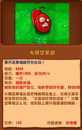 这个中的植物是非常多,很多植物还都是具有独特功能和特性,技能也都是非常不错的,前面也给大家介绍了很多植物的属性玩法,那么这个火爆坚果墙技能属性又应该怎么玩呢,下面就赶紧和小编一起来看看植物大战