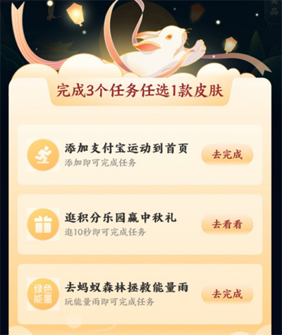 中秋节即将到来,支付宝为了迎接节日也推出了“月是故乡明”系列活动,完成指定的活动就有机会获得中秋限定皮肤哦,下面就一起来看看支付宝中秋限定皮肤怎么领取吧。
