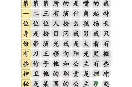 汉字找茬王开朗大男孩怎么过?进入汉字找茬王开朗大男孩关卡后,横着映入眼帘的有“第第第所的是嘴的我”、“一二三有演什角起特”和“位位位人扮么孩扬长”等不通顺的句子,竖着看则有“第一位身份有些神秘”、“第