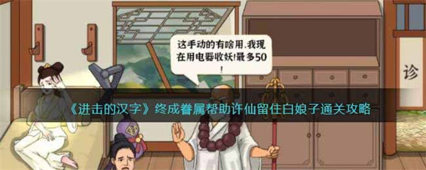 进击的汉字是一款在抖音火爆的文字类益智游戏,终成眷属这一关需要玩家凑够1000000保释金,帮助许仙留住白娘子。以下是都市手游网为大家整理的《进击的汉字》终成眷属帮助许仙留住白娘子通关攻略...