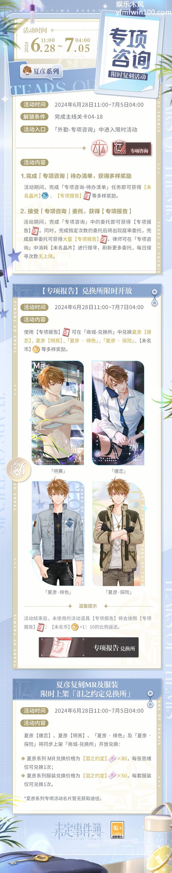 未定事件簿专项咨询活动内容是什么?未定事件簿上带来多样化的角色互动线路剧情,玩家可以在这里操控不同的人物进行互动体验,玩家们可以获得通过专属活动后上带来的奖励内容