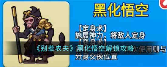 别惹农夫是一款非常好玩的休闲塔防策略游戏,黑化悟空是游戏中制作不错的皮肤之一,有着一定的收藏价值,在比赛中使用这款皮肤也能让你更加的亮眼,那么别惹农夫黑化悟空怎么解锁呢,详细的别惹农夫黑化悟空解锁攻略