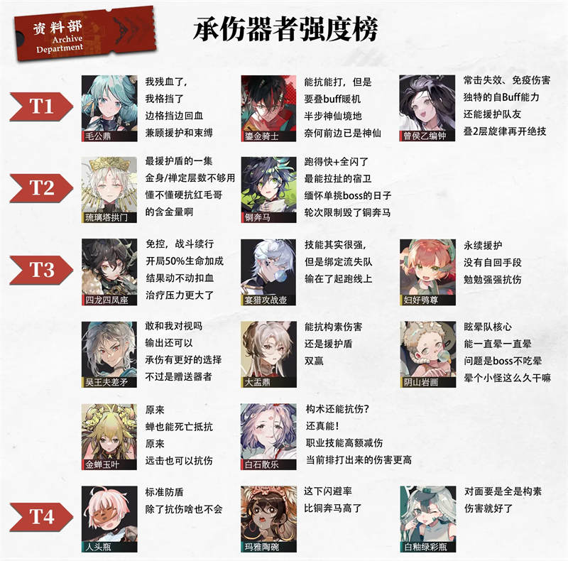 物华弥新承伤器者选哪个?在物华弥新中,承伤器者的职责就是负责吸引敌方的火力输出,从而为队伍中其他输出角色提供更好的输出环境。
