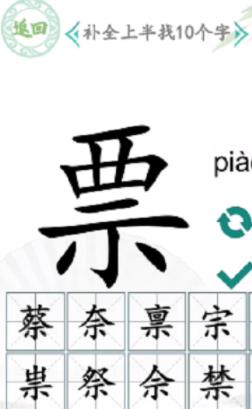 汉字找茬王示补全上半找出10个字攻略汉字找茬王这个游戏是一个汉字闯关的小游戏,游戏中有好几种类型的关卡,除了大家非常熟悉的找字关卡以外,还有补全文字的关卡,其中最近有一个关卡示补全上半找出10个字这个关卡