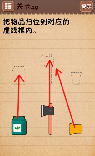 史上最囧游戏4第四十九关怎么过,史上最囧游戏4第49关图文攻略,下面雨落就为大家带来史上最囧游戏4第四十九关的通关方法,让大家可以轻松通关史上最囧游戏4第49关。答案:第一盒牛奶放在第一个虚线位置,后面斧头放在